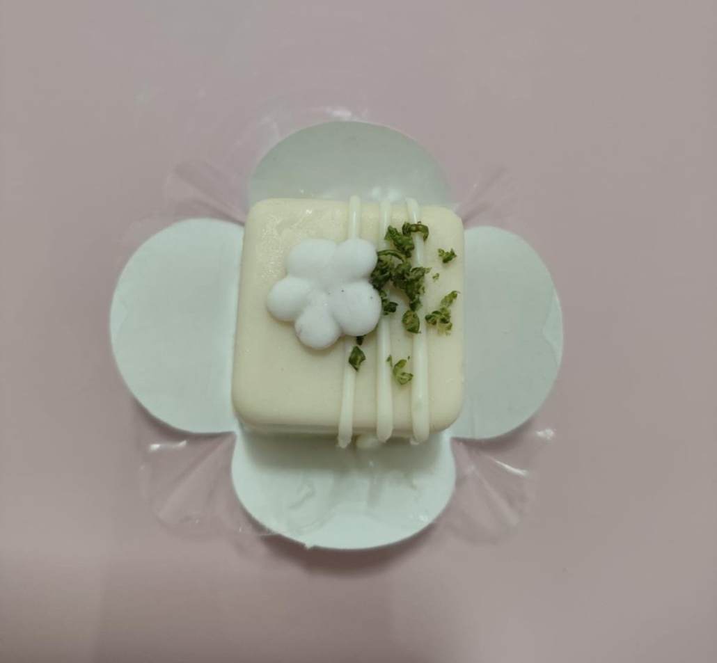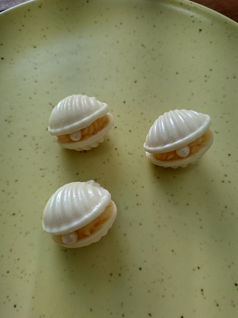 Chocolate branco premium moldado em formato de ostra, acolhendo um creme de coco delicado. Um doce que encanta ao olhar e conquista pelo sutil equilíbrio de sabores.
